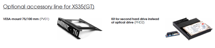 E' possibile anche acquistare due accessori, uno per attacco VESA e l'altro per poter installare un secondo HDD/SSD al posto dell'unità ottica: