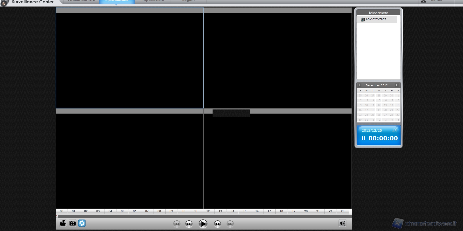 La schermata principale è divisa in quattro parti atte a visualizzare le immagini catturate da altrettante telecamere.